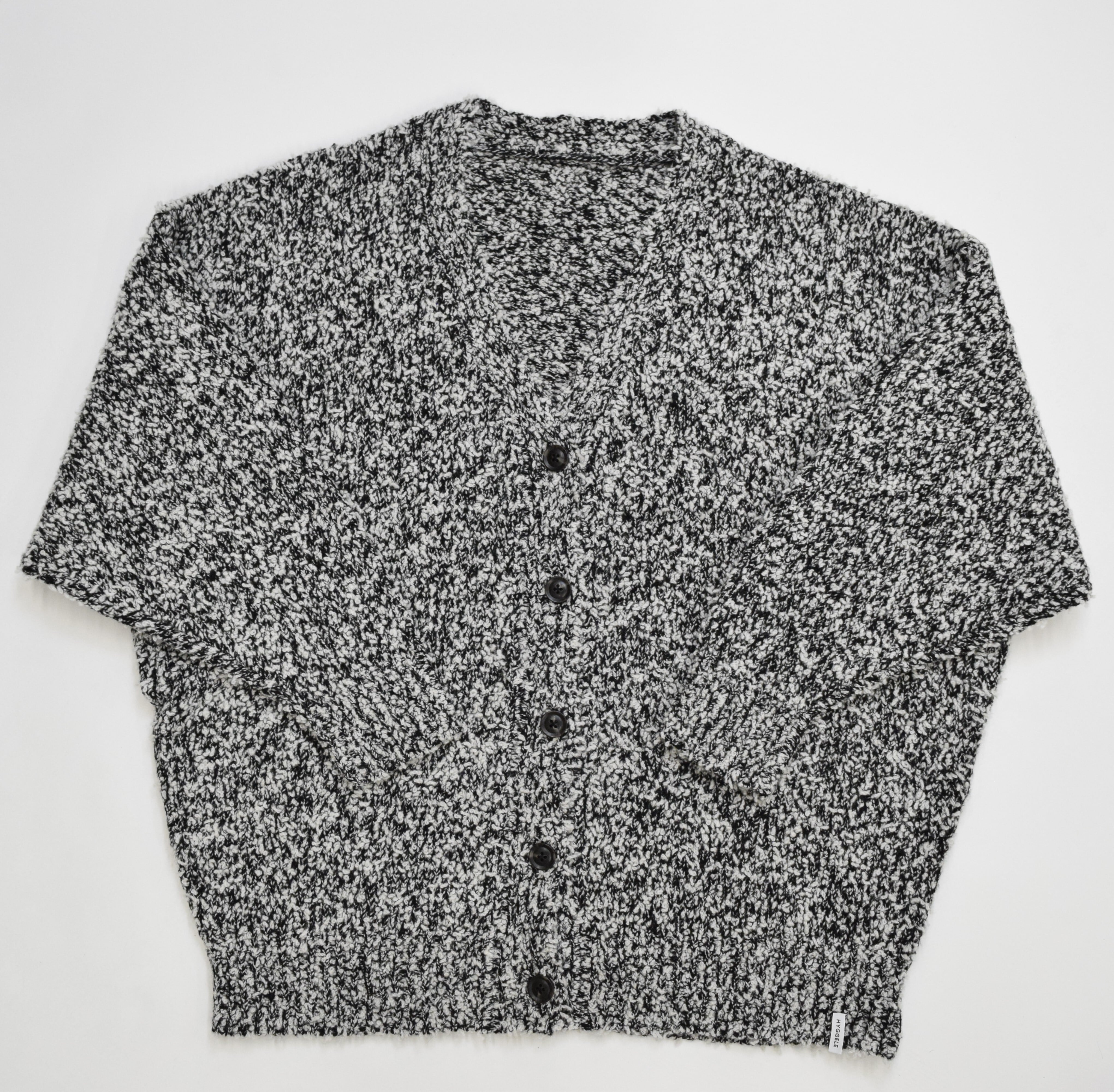 雪のような白い糸がMIXされたメランジニットカーディガン。